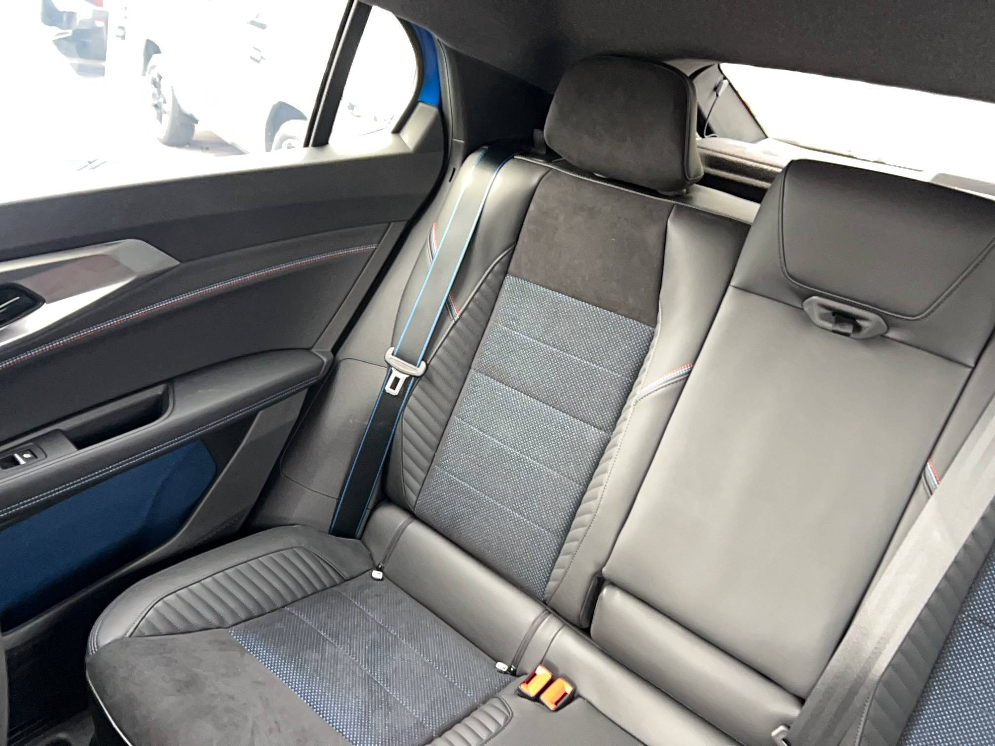 - Sellerie mixte Alcantara avec surpiqûres bleues et logo Alpine lumineux